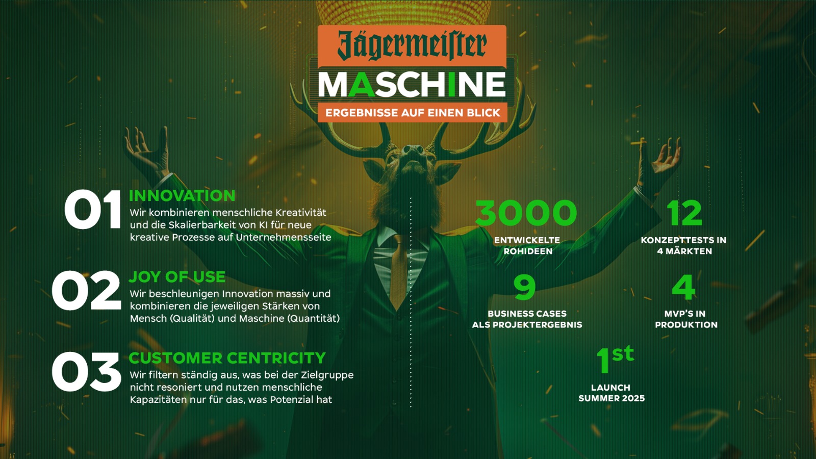 Seit 1935 steht Jägermeister für eine einzigartige Mischung aus Tradition und Pioniergeist. Deshalb sollte 2024 das hauseigene Innovationsformat Icebreaker in die dritte Runde gehen. Es galt: gemeinsam Ideen für Produkte, Kühltechnologien und Verpackungslösungen neu zu entwickeln und das Kulturerbe der Marke im Icecold-Shots-Segment wieder komplett neu zu beleben. Aber wie?